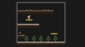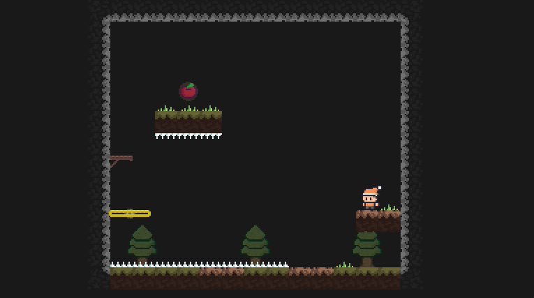 Exit the cave by beating all the levels, but careful! after you beat a level you have to replay the same level (feels like a deja vu, huh?) but without seeing the platforms (and the spikes!). Luckily a fresh apple can refresh your memory, but you can use it only one time each level so.... use it wisely.